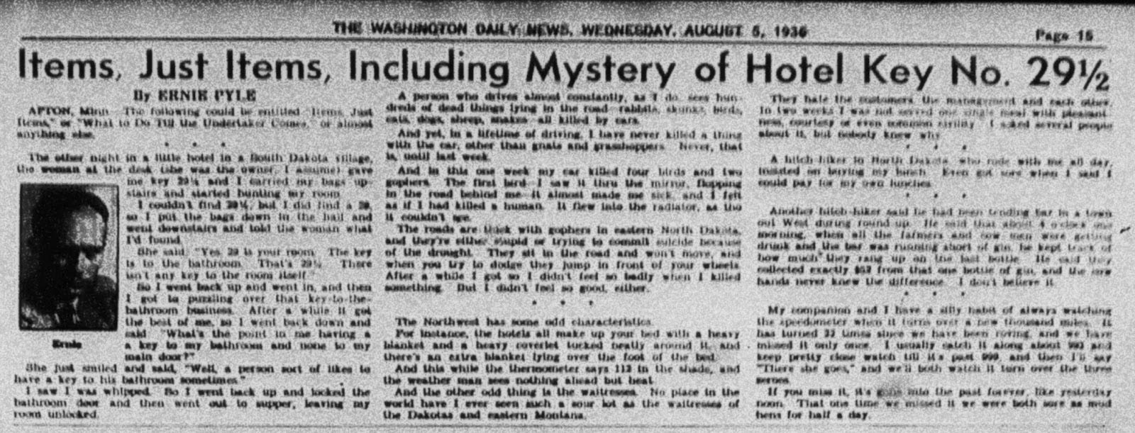 AUGUST 5, 1936-Items, Just Items, Including Mystery of Hotel Key No. 29½